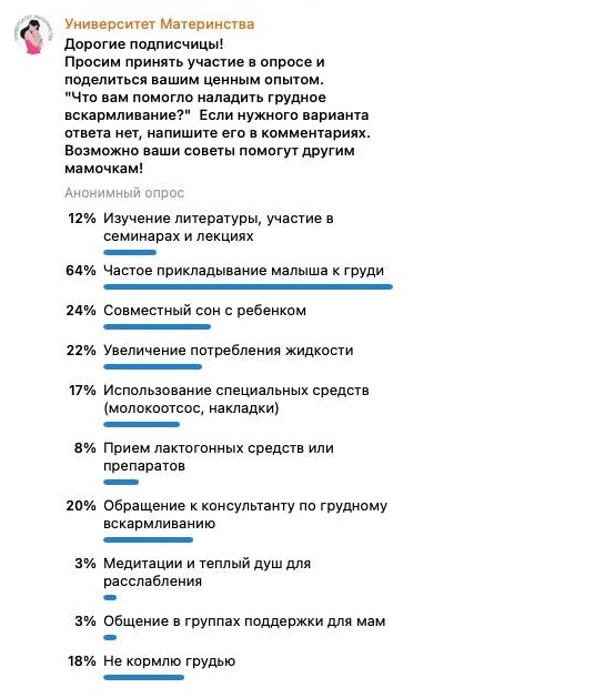 Мы провели ещё один опрос в рамках регулярных быстрых исследований. На этот раз в фокусе оказались мамы младенцев, которые поделились своим опытом налаживания грудного вскармливания. В голосовании приняли участие 395 человек, а в комментариях развернулась активная дискуссия, позволившая глубже понять не только поведение, но и эмоциональное состояние женщин в этот период.